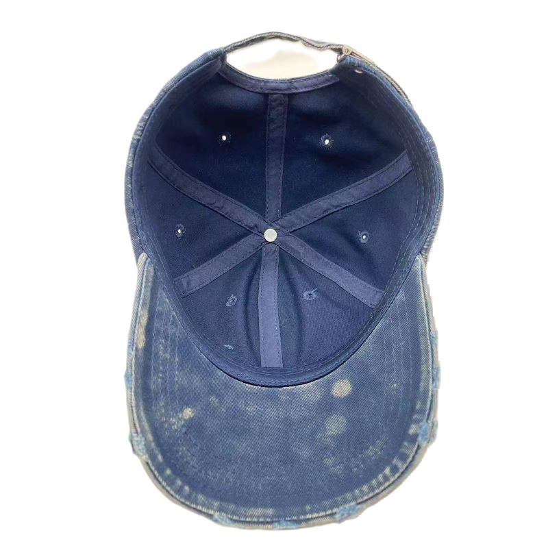 JEYA custom 6 paenl navy blue dad cap, is very soft. The cap is denim fabric and distressed dad cap. Your brand logo and color could be customized.